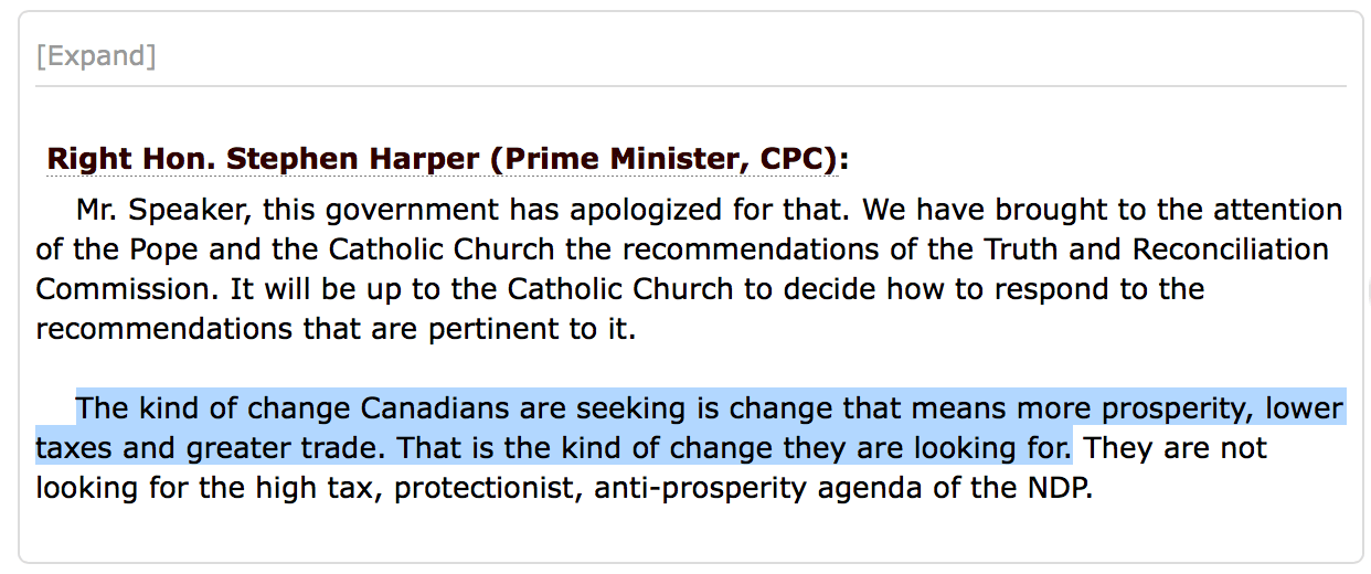Strangely – responding to Mulcair in the House of Commons last June – even Harper acknowledged that Canadian’s want change. This is a rather puzzling position for an incumbent to take.